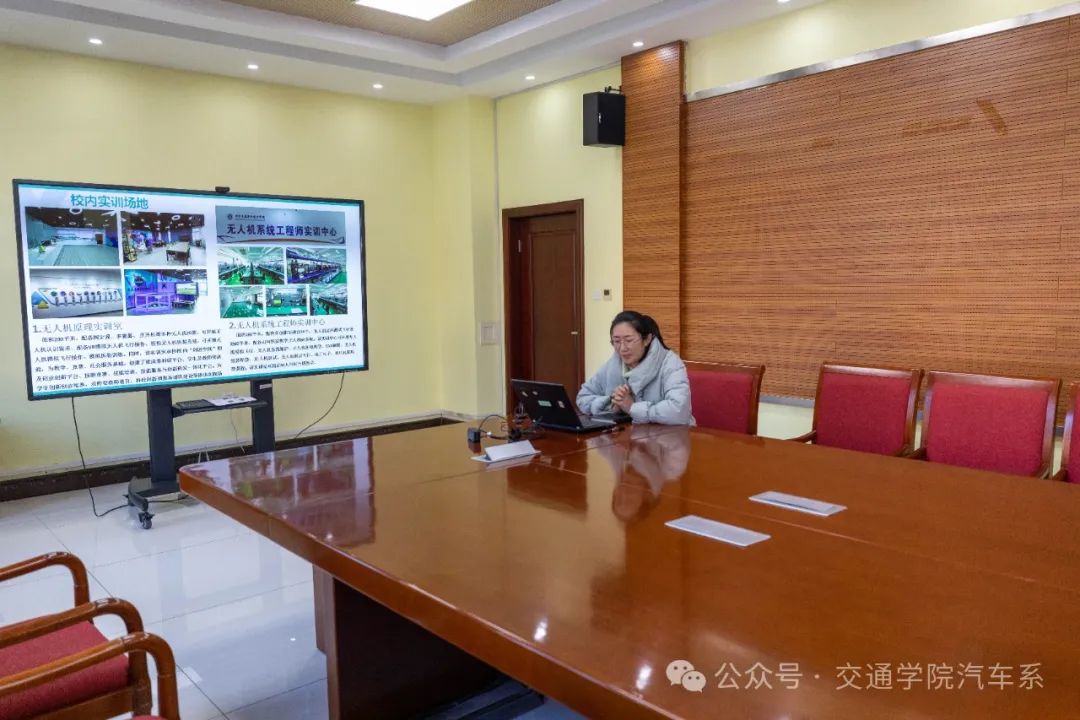 无人机教研室专业教师张琪琪老师向浙江海警学院详细介绍了无人机专业的基本情况、人才培养方案设置、课程设置以及实训室的建设情况,并介绍了无人机模块化课程教学体系及教学方法,获得了海警学院代表团的高度认可。