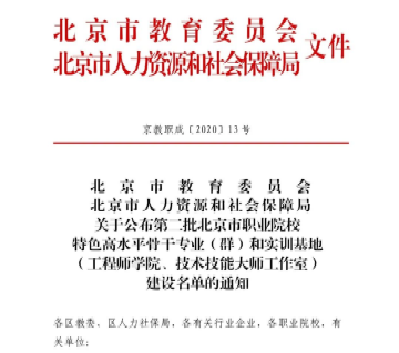 9月28日,北京市教育委员会和北京市人力资源和社会保障局正式公布第二批北京市职业院校特色高水平实训基地(工程师学院、技术技能大师工作室)建设名单,我院申报的“广联达数字城市建设与管理工程师学院”成功入选!