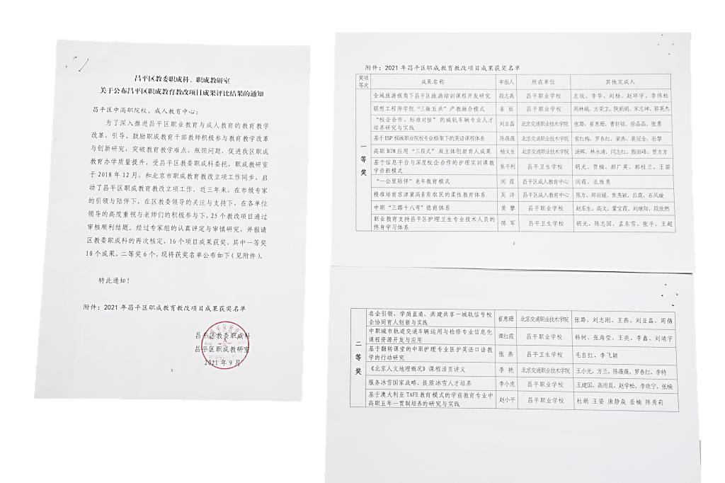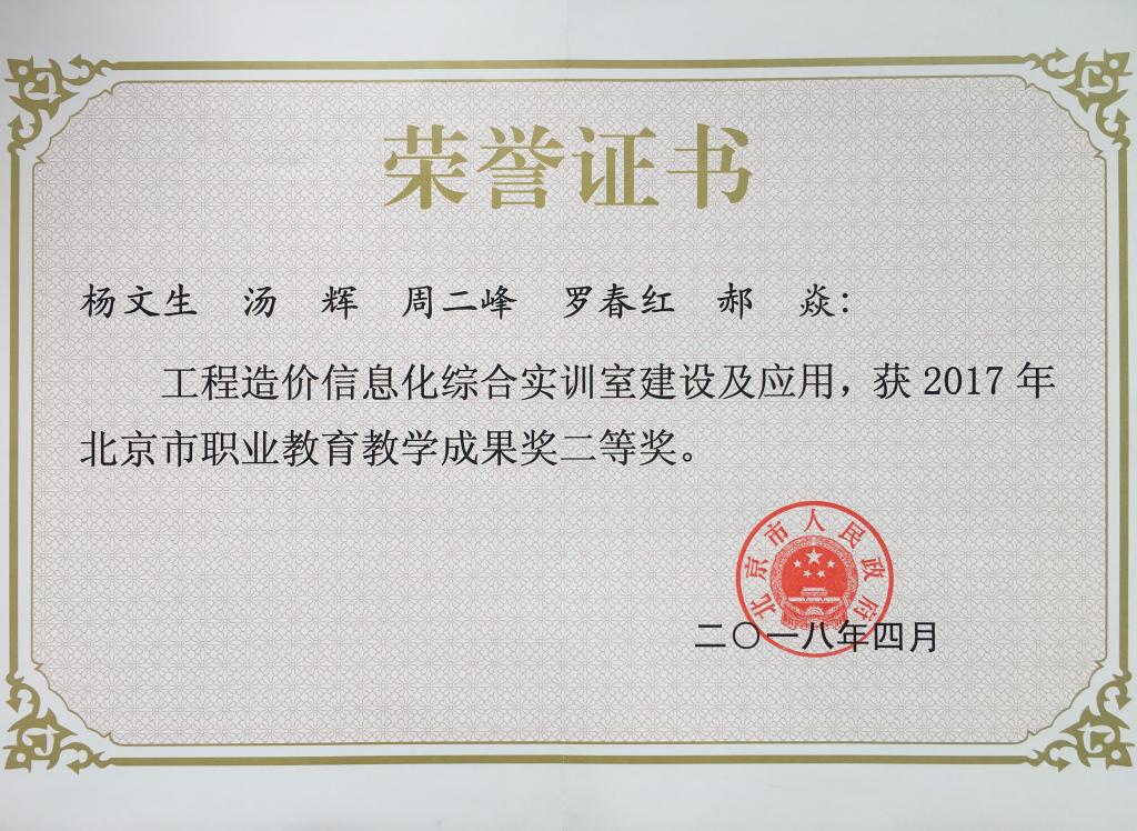 北京市人民政府颁发教学成果二等奖
